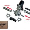 Universele Light Duty Elektrische stuurbekrachtiging kit. Motor wijzend boven de stuur as naar links kijkend vanaf de input kant (stuur kant). Als alternatief kan de motor ook onder de stuur as, wijzend naar rechts worden geplaatst. Houd echter wel rekening met de afmetingen (zie afbeelding 4).